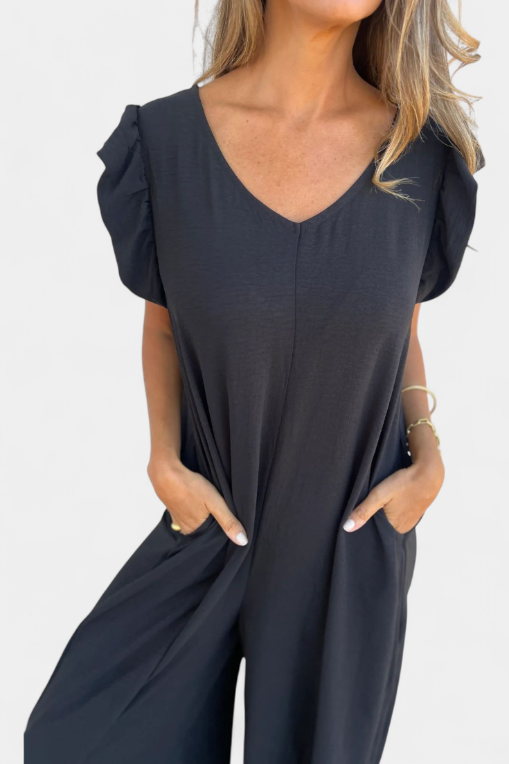 El mono Isela canaliza una energía salvaje y chic con su estampado de leopardo y silueta relajada. El escote en V alarga visualmente el cuello, mientras que los bolsillos frontales aportan funcionalidad con estilo. Una prenda ideal para destacar sin esfuerzo en días casuales o escapadas espontáneas.